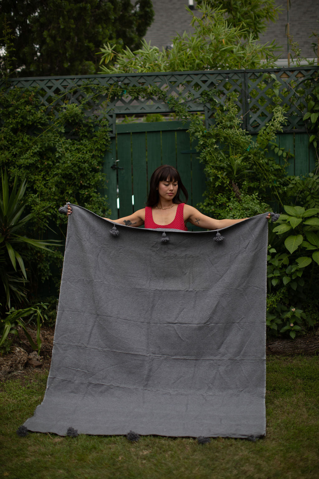Due to the handmade nature of our products, each is a work of art; a one-of-a-kind piece with slight variations in color, texture and shape. Hand loomed in the Moroccan port city of Essaouira by our artisan, Mohamed, our Pom Pom blankets are made on traditional wooden looms from 100% cotton.