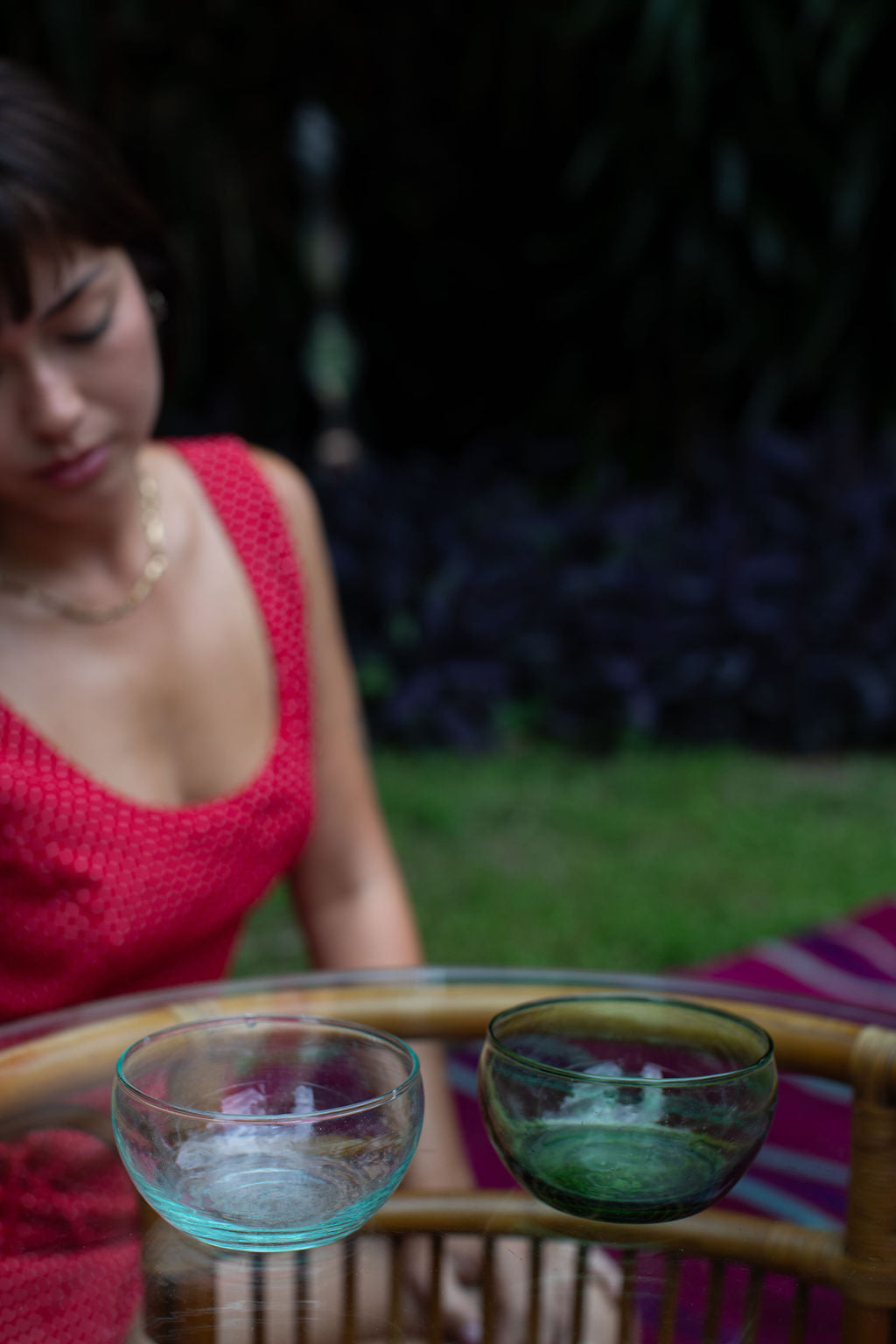 Due to the handmade nature of our products, each is a work of art; a one-of-a-kind piece with slight variations in color, texture and shape. Our glassware is hand blown in Marrakesh and made of recycled glass. Sustainability never looked so good.