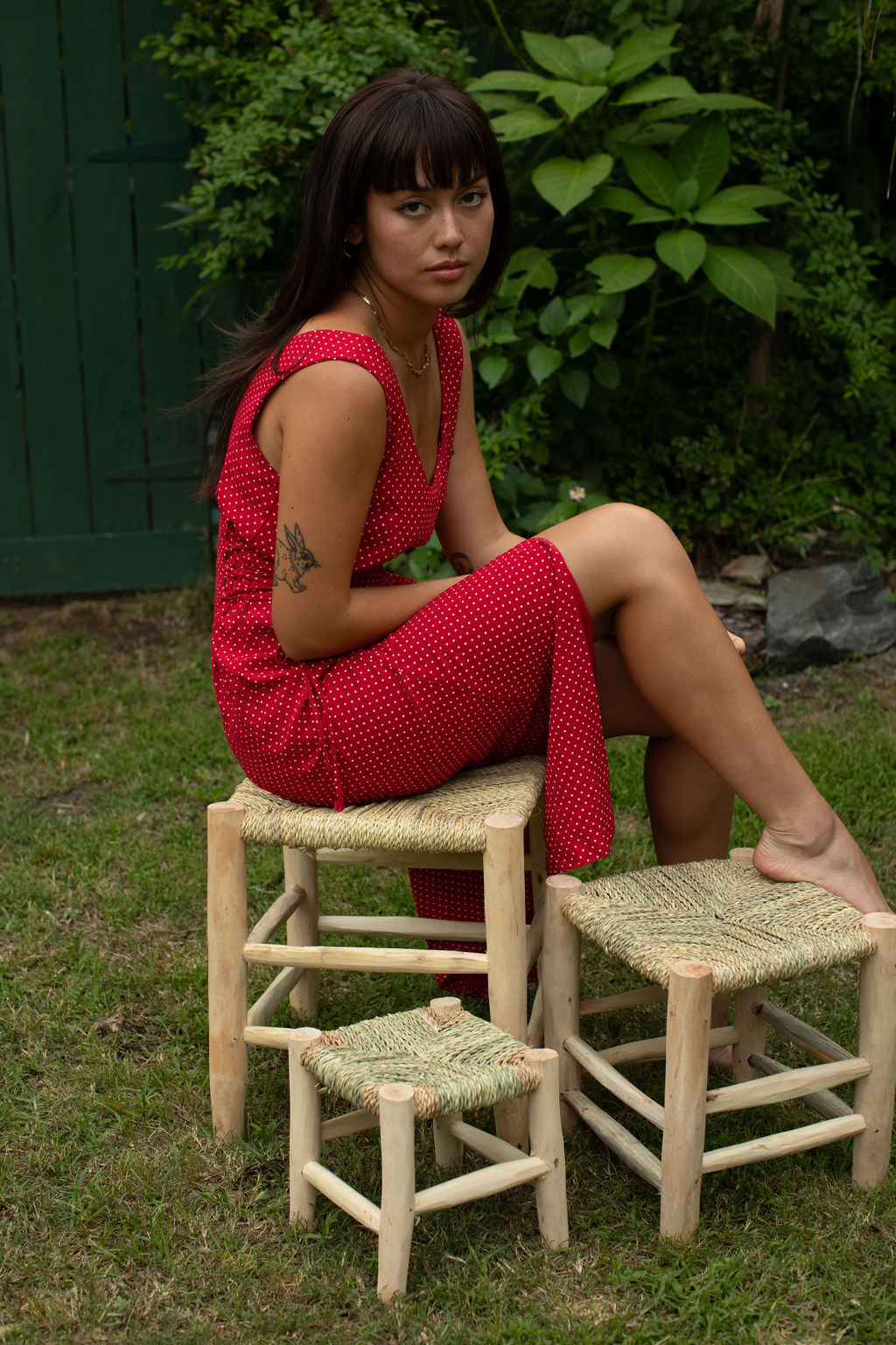 Set of 3 nesting stools made from natural rope and eucalyptus wood. Perfect for a plant stand, a natural nursery decor or for a kid's playroom.